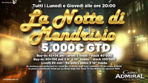 A grande richiesta l’Admiral Poker Room di Mendrisio ripropone l’immancabile torneo de La Notte di