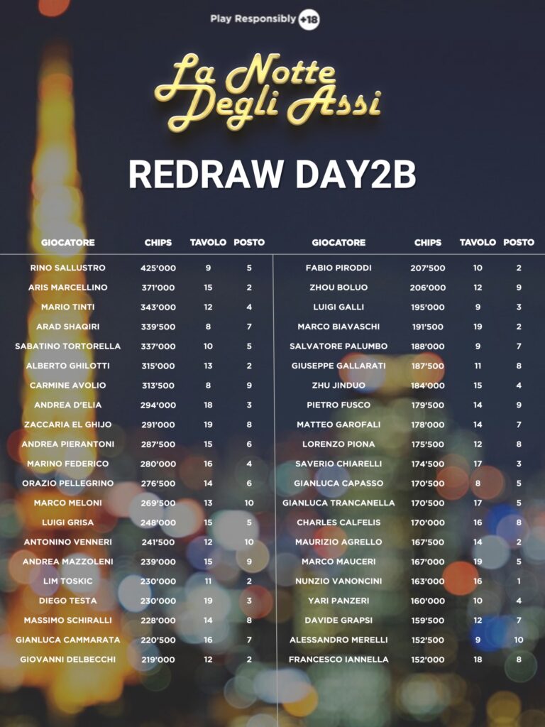 Ritroviamo al Day2B giocatori del calibro di Claudio di Giacomo, Antonino Venneri e Daniele Cagnin che chiudono la giornata rispettivamente con 101’500, 241’500 e 66’500.